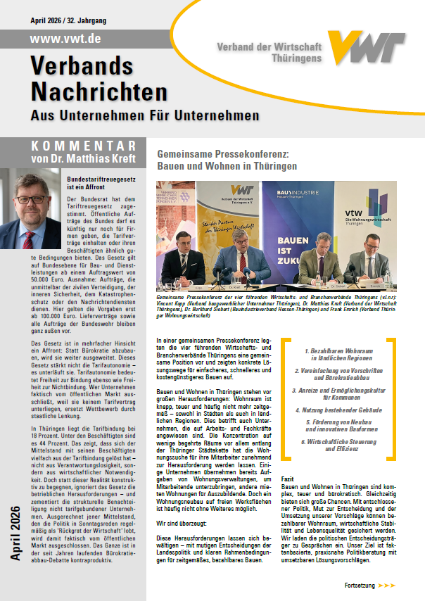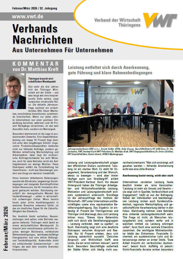 Die TrendINFO wird im gemeinsamen Auftrag des Verbandes der Metall- und Elektro-Industrie in Thüringen (VMET) und des Allgemeinen Arbeitgeberverbandes Thüringen (AGVT) von der IWT - Institut der Wirtschaft Thüringens veröffentlicht.